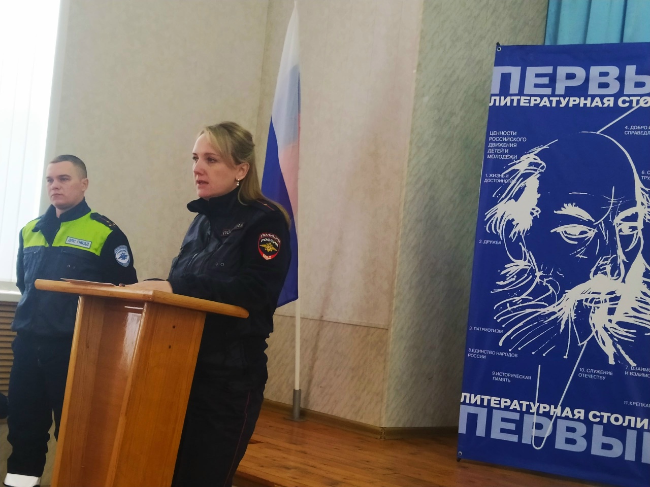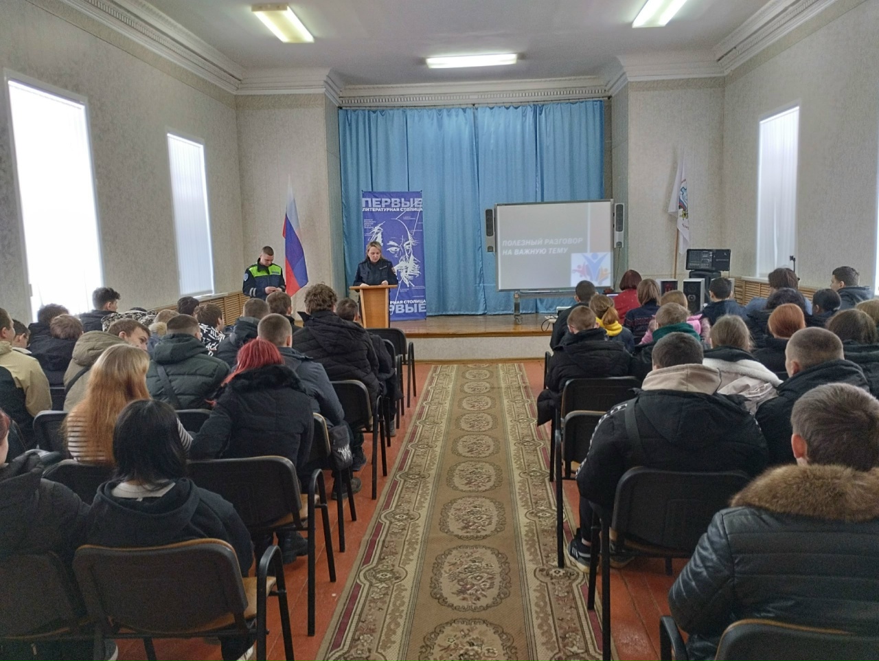 27.01.2026 года в БПОУ ОО "Покровский техникум" для обучающихся групп 11-П (куратор Е. Н. Меркулова), 11-Э (куратор Л. В. Гущина), 21-П (куратор Н. В. Карасёва), 21-Э (куратор Т. А. Котова) была организована встреча с сотрудниками ОМВД России по Покровскому району В. Г. Чмукине, инспектором ПДН и А. О. Квасневским, инспектором по пропаганде безопасности дорожного движения на тему: "Полезный разговор на важную тему".